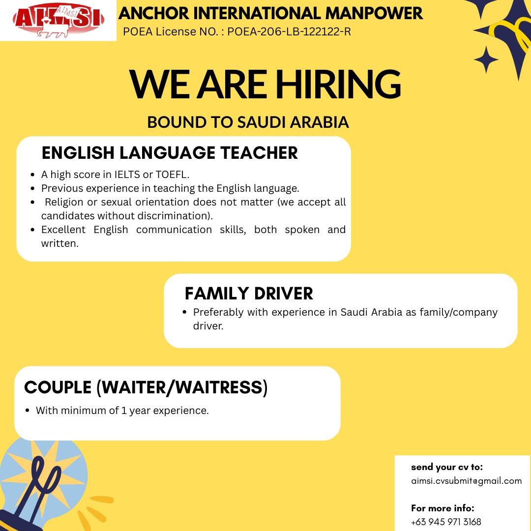 We are currently looking for three essential roles: English Language Teachers, dedicated Family Drivers, and a charming Couple for Waiter/Waitress positions. This is more than just a job—it’s a chance to embark on a rewarding journey, secure a brighter future for your family, and experience life in one of the world’s most dynamic countries.