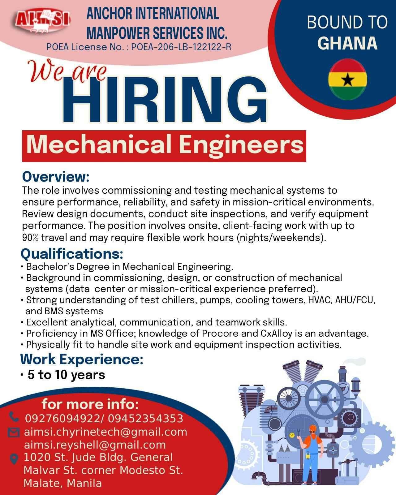 This is a defining opportunity for a dedicated Filipino Mechanical Engineer to achieve global recognition with a stable, zero-fee career in Ghana. Your expertise is valuable, and AIMSI is here to ensure you land this role ethically.